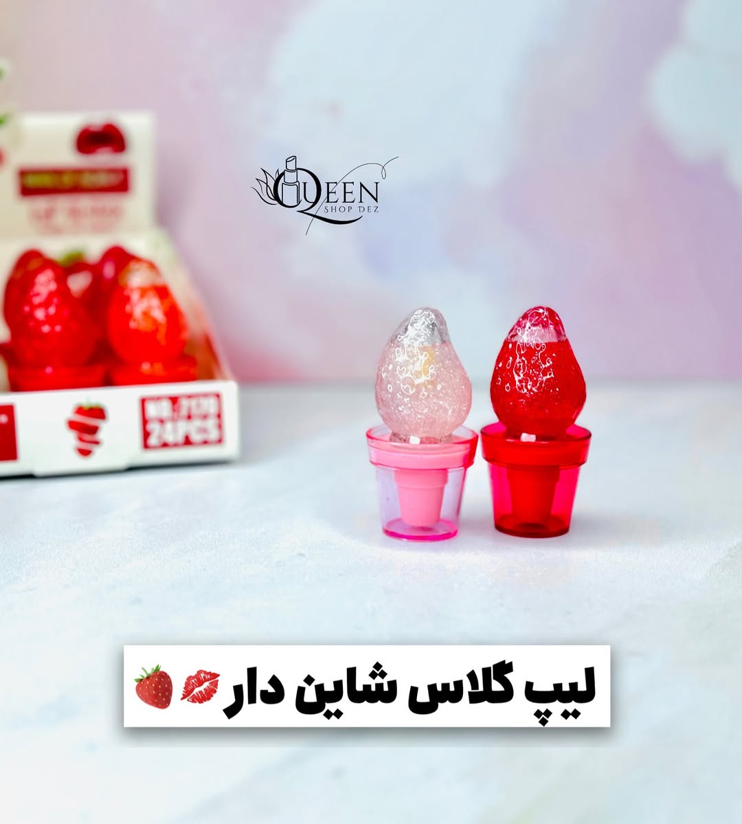 لیپ گلاس توت فرنگی رنگ صورتی لایتی داره شاین خیلی
